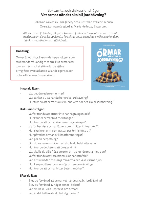Vet ormar när det ska bli jordbävning?Bokfrågor och ordsök